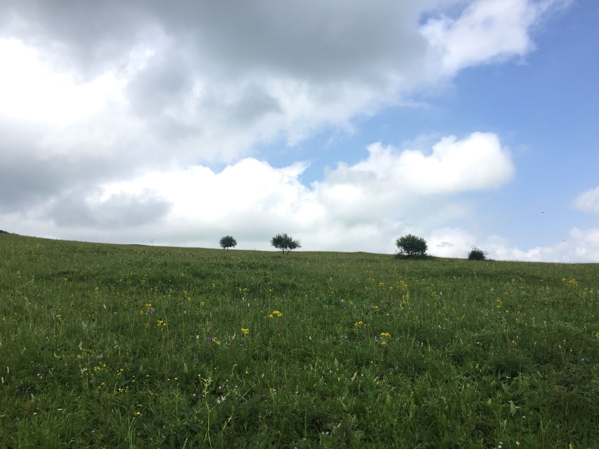 (*@ο@*) 哇~真是美啊……满眼生机盎然的绿色,满山的野花,远处的青山,蓝天白云……之前的不愉快全都烟消云散,所有的泥地烂路湿滑危险都通通值了!