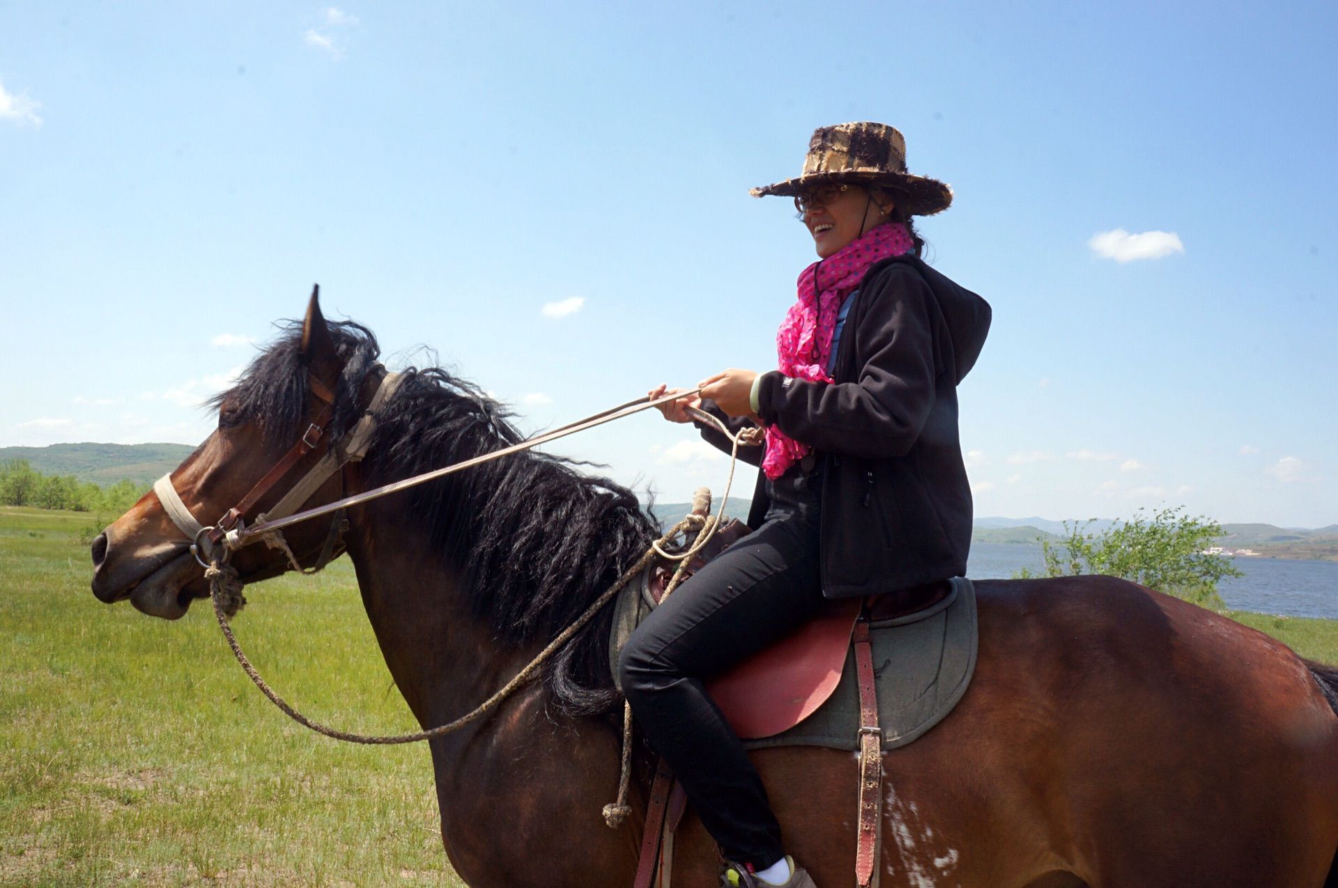 牛团想要骑大马,开车兜转了半天,终于在多伦湖附近发现了一处骑马的地。