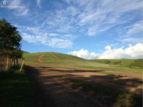 主要耍了两个点。一个是大滩镇大滩村的东北方向的自然风光就很美了,骑马都是去那里,走着也不算远,我们是开车过去的,由于那一路都是马走过的路,要不是开着SUV建议不要深入,可以放在山下。我们的小白就差点旋入沙子里,还好老爸经验丰富,要是我开绝对出不来了。另一处景点是问了下农家院老板,他建议我们去柳树沟景区,说哪里的草很高,还有很多花,第二天早晨骑完马就奔柳树沟了。之前看了攻略印象深刻的景点就是情人谷和闪电湖和孤山马场,老板说闪电湖比水库还赖呢,孤山马场景色也一般,情人谷的照片我看过,感觉和我住的地方的村后的景差不多,就没有去。柳树沟确实还可以,但没有想象中那么好,可能是想的太美好了,去时走的路是农家院老板告诉的路线,一路上又问了几个老乡,开了得一个多小时才到,路况不太好,就是加上石子的土路,还有一段是穿村的完全土路,要是下雨肯定就不能走这个路,很容易把车炫泥里。颠簸一路终于到了,看到有个类似检查站似的,但一看就不是正规的点,如果进景区每人30元,甭管它了,谁让咱是到老远来的呢。