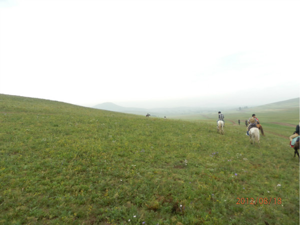 “驾!”18日早上7点不到,我骑着一匹浅棕色的马儿就启程了,奔向我向往已久的大草原。
