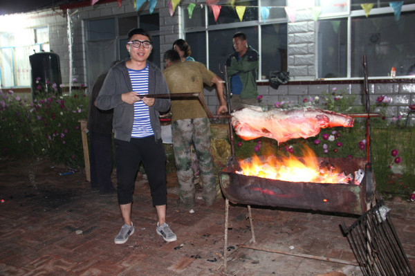 晚上来了只烤全羊。话说店家拉来一车羊让夏二哥跟蝙蝠王选,夏二哥选了一个说“这个不错,白白的很可爱”话音一落,可怜的羊当场就OVER了,夏二哥对这一幕毫无准备,吓了个半死。所以提醒大家,选完赶紧扭头就走,不然会有阴影的。