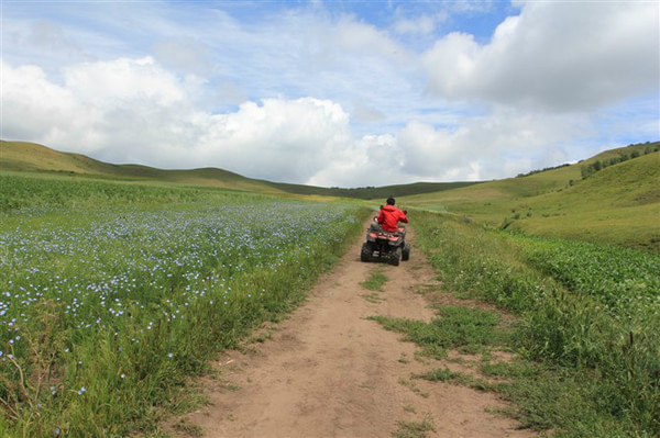 2、大约在12:00到达情人谷开始午餐,餐毕开始走向浪漫的情人谷深处,观蓝天白云,桦树林和漫山遍野的山花,闻百鸟鸣唱,牛羊哞叫。让你亲身领略——天苍苍 野茫茫 风吹草低见牛羊之美景。