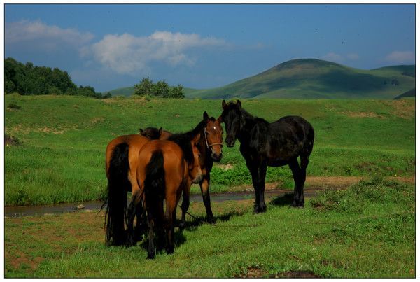 我们从大路拐进了一条小道,穿过了一个村庄。据说,这里曾经是张艺谋导演拍摄《我的父亲母亲》的地方。这里有许多马匹和沙地摩托供游客选用。而我们选择了徒步,因为不愿意放过每一处风景。溜溜达达,边走边聊,交流着摄影的体会,时不时端起相机,拍上几张。要问我,这里的景色美到什么程度?我的回答是,每张照片都可以做屏保。在坝上逗留了近4个小时,大伙意犹未尽,在一片油菜花田里,摆起了各种造型,尽情地笑,尽情地拍。我的体会是,不来坝上草原遗憾,来了坝上草原还想来。午餐后,我们结束了坝上之行的拍摄活动,经怀柔返回北京。