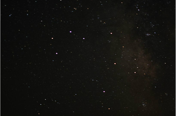 变焦镜头落房间了,实在懒得爬下山去取了,只能使用50MM定焦,银河全貌是拍不下来了,只能拍一个区域,仔细看还是可以看出点效果的,呵呵。