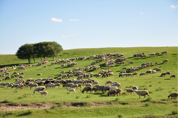 这只小羊吃的太欢了,已经脱离大部队了,正想着要不要赶 它回去,远方看到牧羊人已经回来找它了~~你真是只幸福的小羊