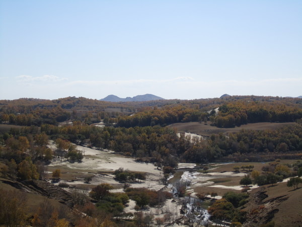 我想这地方很久很久以前应该很美很美,水域充沛,原有的河床还依然清晰,只是现在都变成了这个样子~~荒漠化了。保护环境~~~~~~~~~~