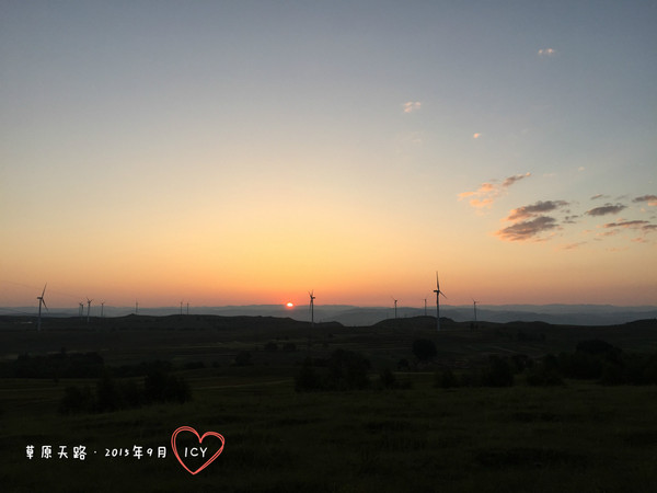 野狐岭是草原天路东段的西口。我们来的恰是时候,从西往东开,金色的夕阳从背后照来,眼前的景色分外美丽。