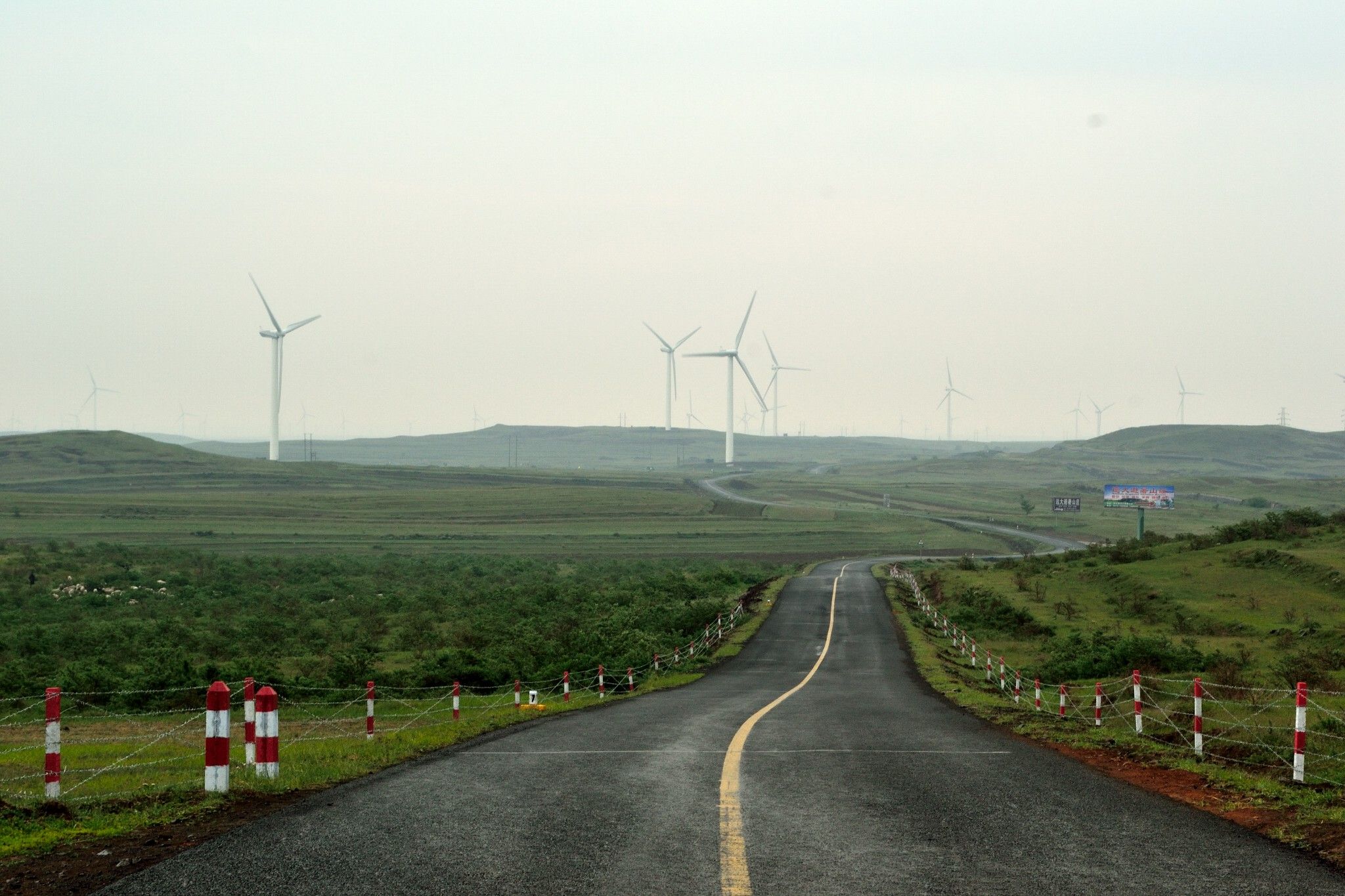 在我的幻觉中,这条路一定是蓝天白云与绿色草原相得益彰,草原之上,漫山野花,随风摇曳,五彩缤纷。一早离开张北县城的时候天空虽有浓云,但也露出了霞光,期盼驶入草原的时候是迎着朝阳。然而,从国道G207拐入这条县道X001(草原天路)的时候,天空就下起了雨,一路上,细雨时断时续,始终不见阳光,直至崇礼区的时候,才见一点点的蓝天,原准备向北到沽源县的计划也被迫取消。不过,话又说回来,在雨中的“天路”行驶,看到的也是另一番的风景。以下二十几幅照片,就是在这样场景中的记录,不再另作说明。